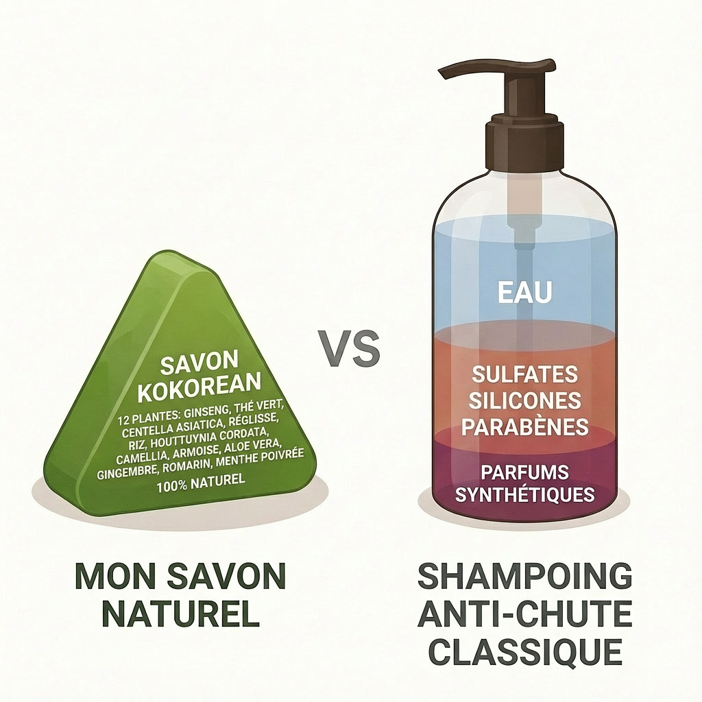 J'avais une perte de cheveux liée au stress et ce savon m'a bien aidée. Après 2 mois mes cheveux sont plus épais et la chute a vraiment diminué. Je suis soulagée