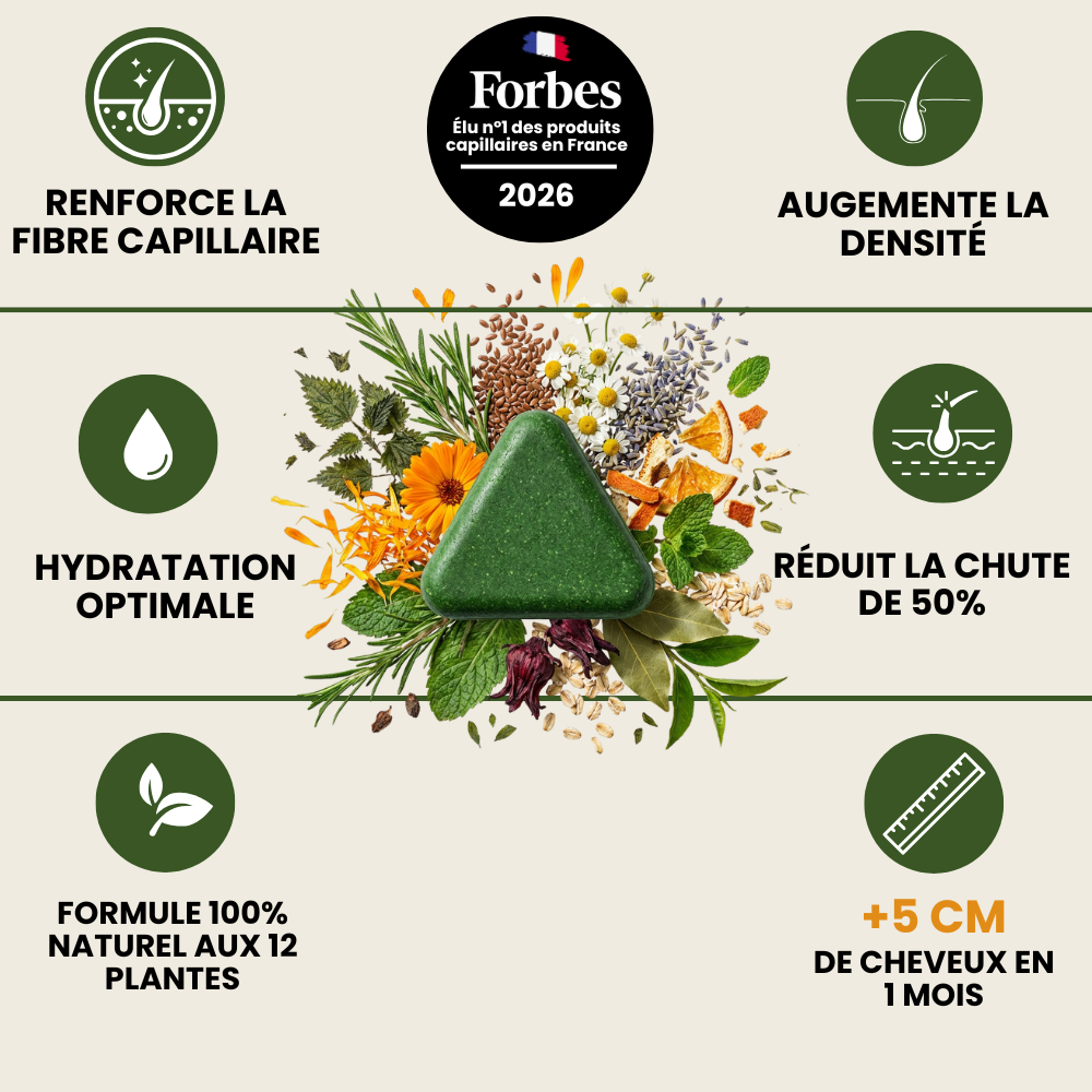 2 lavages par semaine suffisent 🌱 Le cuir chevelu doit respirer pour réguler naturellement le sébum. Grâce à ses 12 herbes médicinales, le shampoing garde les cheveux légers et frais plusieurs jours sans graisser.