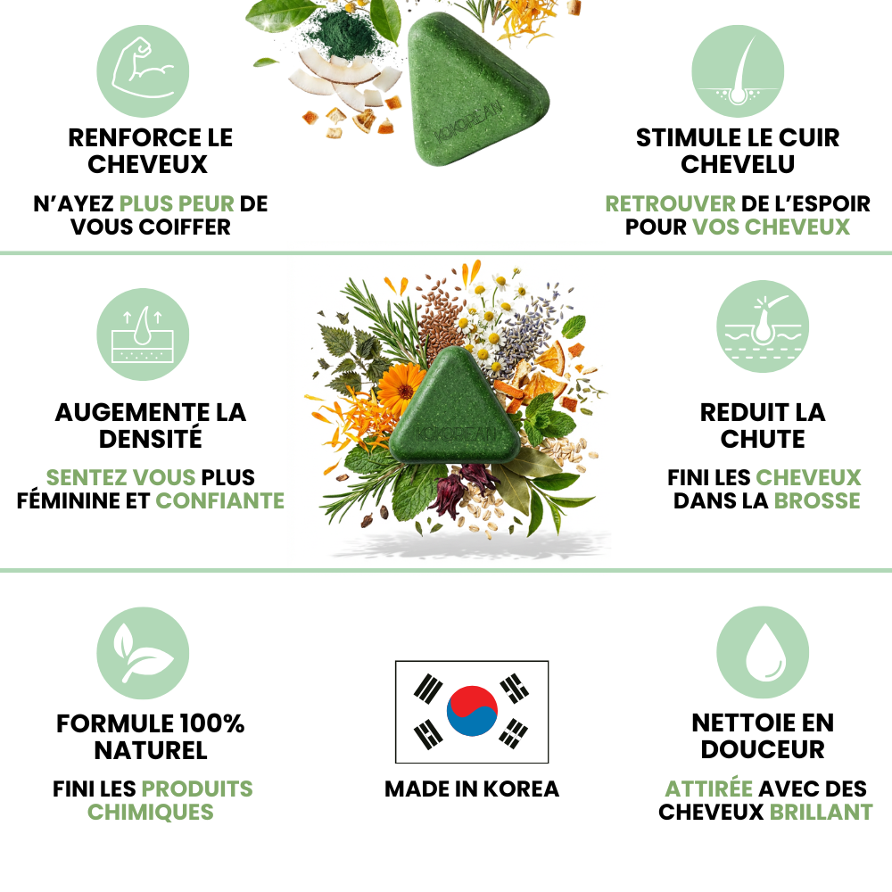 2 lavages par semaine suffisent 🌱 Le cuir chevelu doit respirer pour réguler naturellement le sébum. Grâce à ses 12 herbes médicinales, le shampoing garde les cheveux légers et frais plusieurs jours sans graisser.